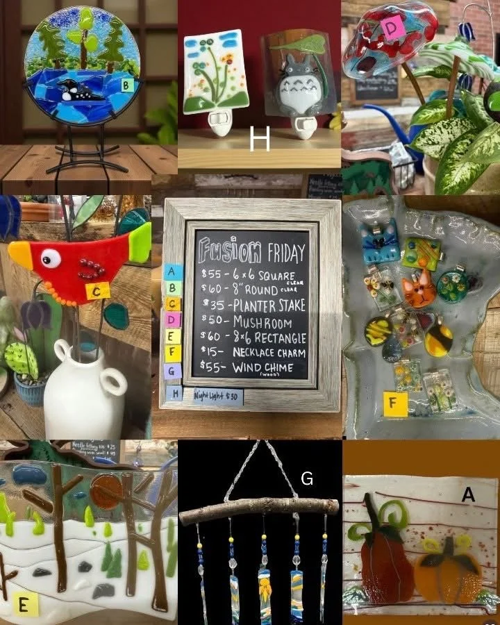 Fridays 6:00-9:00 pm are open glass fusing nights- drop in and create!